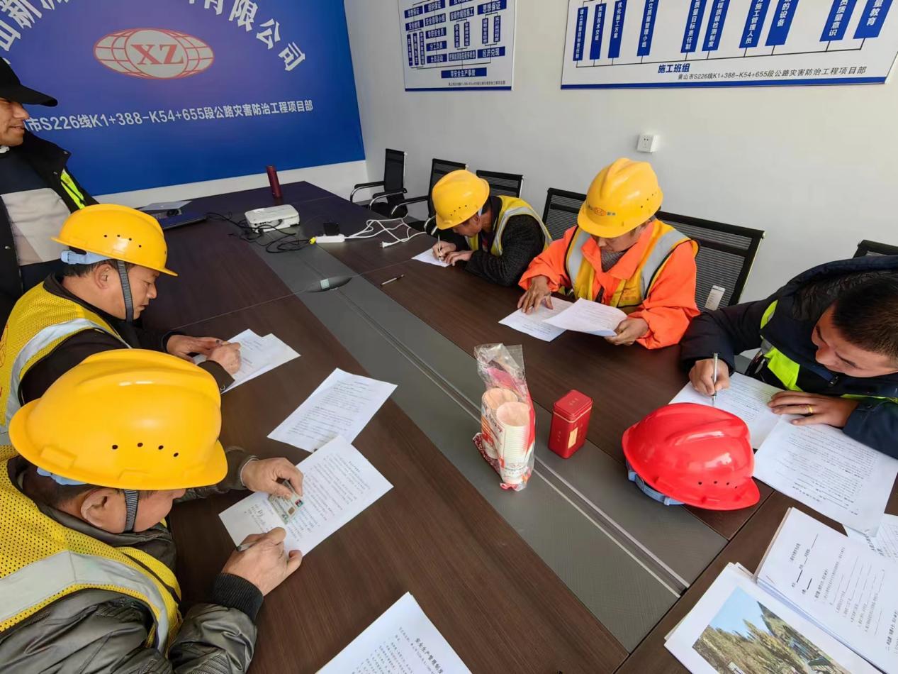 為進(jìn)一步提升項目作業(yè)人員的安全知識,提高全員安全意識,防止各類事故的發(fā)生,2024年1月16日,集團公司安全部在黃山市S226線K1+388-K54+655段公路災(zāi)害防治工程項目部對三個擋墻邊溝施工班組共計四十六個工人進(jìn)行了安全生產(chǎn)教育培訓(xùn),集中開展了公路施工安全視頻教育學(xué)習(xí)、安全技術(shù)交底并全員簽訂安全生產(chǎn)承諾書,施工作業(yè)人員安全考核等培訓(xùn)活動。