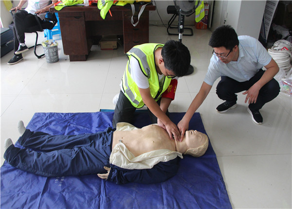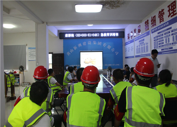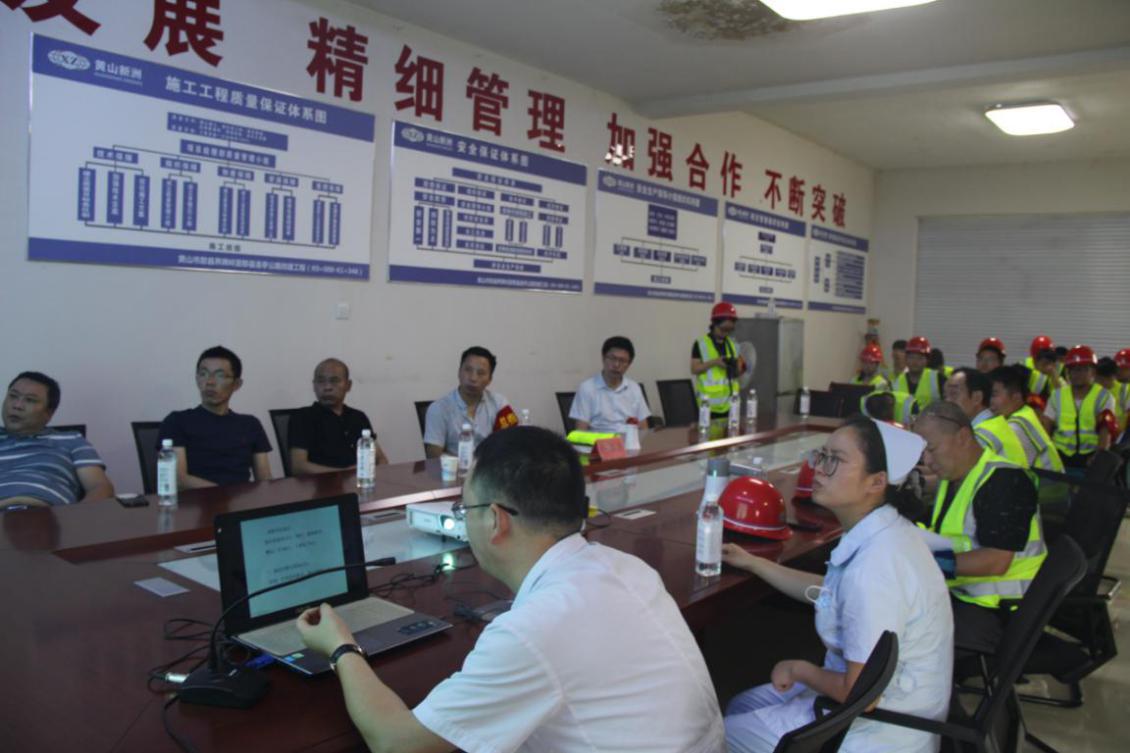 為確保演練順利進(jìn)行,項(xiàng)目經(jīng)理巴亮(現(xiàn)場(chǎng)指揮)組織多次預(yù)演,并邀請(qǐng)歙縣人民醫(yī)院專家于歙黟路項(xiàng)目部會(huì)議室進(jìn)行現(xiàn)場(chǎng)急救常識(shí)培訓(xùn)(止血方法、包扎、固定、搬運(yùn)等創(chuàng)傷技術(shù)、心肺復(fù)蘇急救方法等)。