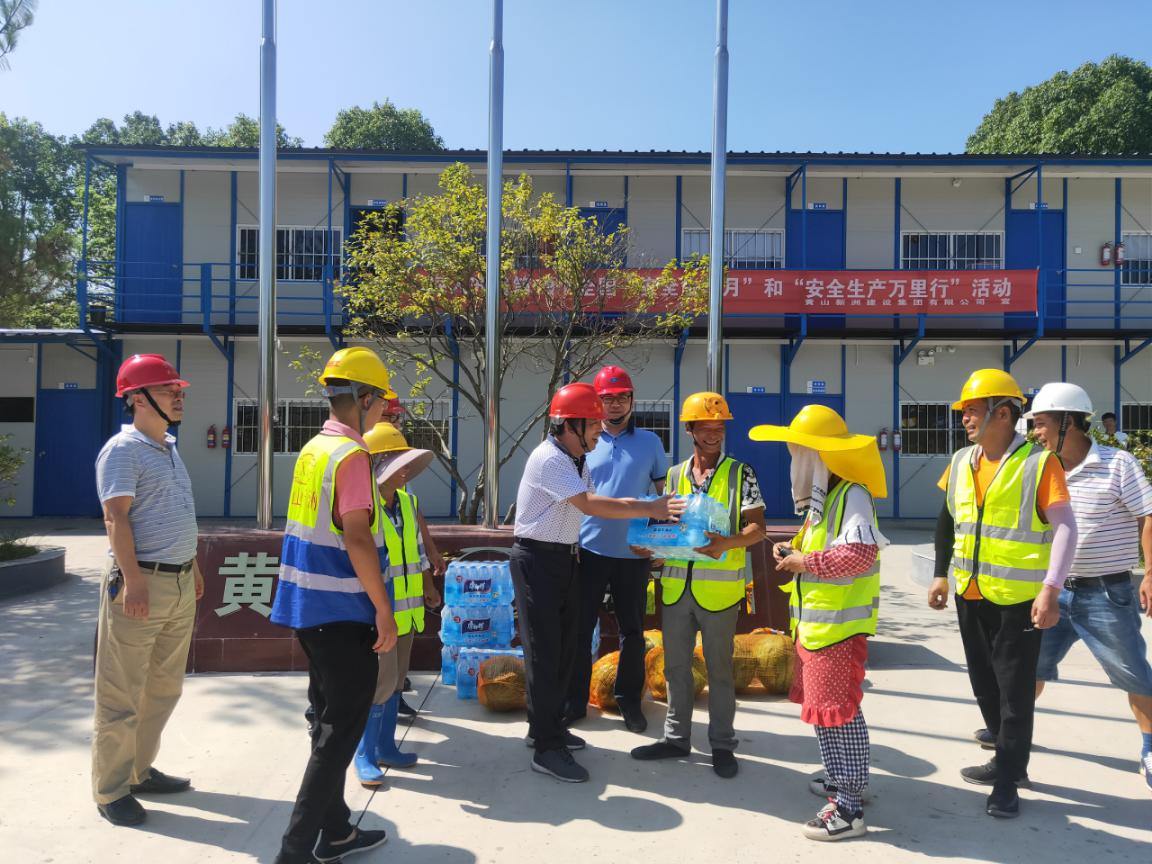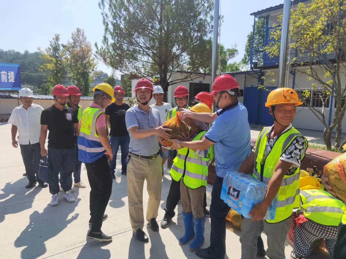 “大家辛苦了!大熱天里施工作業(yè)一定要注意防暑、注意安全”。市住建局副局長(zhǎng)徐樹(shù)紅、建管處主任張先波一行一進(jìn)入施工現(xiàn)場(chǎng)就對(duì)正在作業(yè)的農(nóng)民工兄弟說(shuō)道。為關(guān)懷一線建筑工人,加強(qiáng)高溫天氣下安全生產(chǎn)相關(guān)工作,8月18日上午,市住建局開(kāi)展夏季高溫慰問(wèn)送清涼活動(dòng),為在高溫下施工作業(yè)的工人們送來(lái)了防暑降溫用品。一瓶瓶礦泉水、一個(gè)個(gè)味甜個(gè)大的西瓜,為工人緩解暑熱,帶去一份清涼,收到慰問(wèn)品的工人們都露出開(kāi)心的笑容。