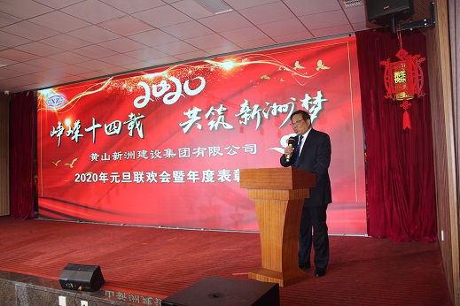 回首往昔,我們碩果累累、我們熱情洋溢;堅(jiān)定現(xiàn)在,我們信心滿滿、我們激情澎湃;展望未來,我們生機(jī)勃勃、我們斗志昂揚(yáng)。2019年12月28日下午,黃山新洲建設(shè)集團(tuán)有限公司2020年元旦聯(lián)歡會(huì)暨年度表彰大會(huì)在總公司多媒體功能室隆重舉行。公司全體班子成員、管理層、特邀嘉賓共200余人參會(huì)。黃山市建筑業(yè)協(xié)會(huì)秘書長程文華、黃山學(xué)院建筑工程學(xué)院院長趙士德、安徽交通職業(yè)技術(shù)學(xué)院土木工程系副主任王守勝、黃山市建筑業(yè)協(xié)會(huì)副秘書長耿任飛、黃山學(xué)院建筑工程學(xué)院博士全偉、安徽交通職業(yè)技術(shù)學(xué)院黃山新洲班輔導(dǎo)員劉必勝、黃山市建筑業(yè)協(xié)會(huì)辦公室主任張偉、黃山新洲建設(shè)集團(tuán)有限公司顧問吳晉平主任、黃山新洲建設(shè)集團(tuán)有限公司總經(jīng)理李利成、董事長李文武出席會(huì)議,以此來表達(dá)公司對(duì)全體職工節(jié)日的關(guān)懷與問候、表彰一批業(yè)績優(yōu)秀的職員和員工、營造節(jié)日活躍的氣氛、增進(jìn)大家的溝通和交流,答謝大家一年來辛勤的工作與默默付出。